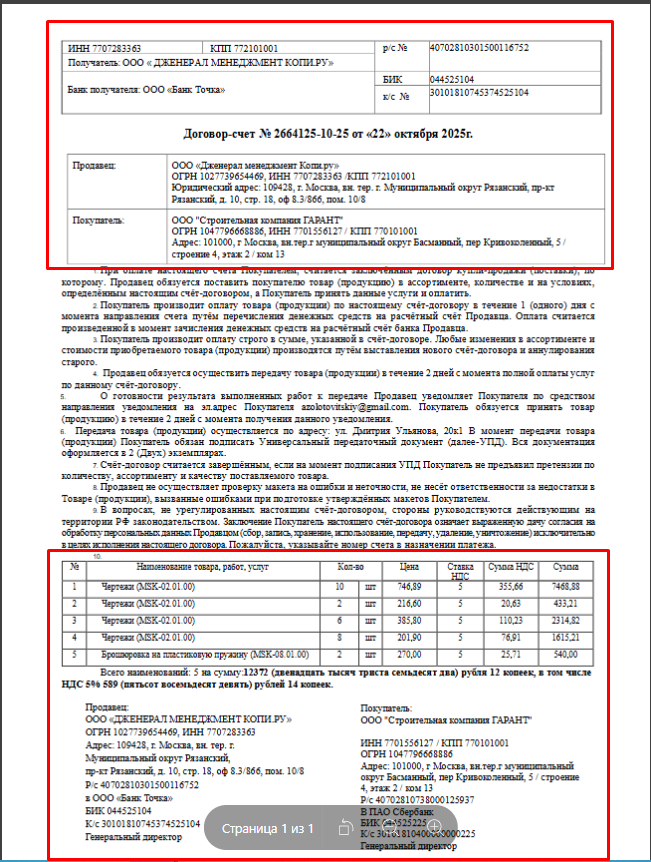 Для этого на вкладке нажмите кнопку Загрузить свой документ и выберите нужный файл. При загрузке произвольного документа доступна возможность выбора поставщика и покупателя по аналогии с остальными документами.
