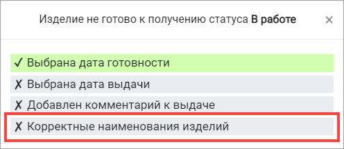 Добавлено новое условие, которое должно быть выполнено при изменении статуса заказа или изделия.