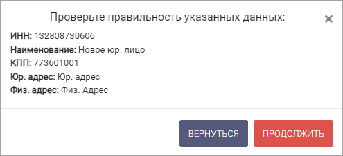 Убрано ограничение на создание юридического лица в случае его отсутствия в справочнике dadata.