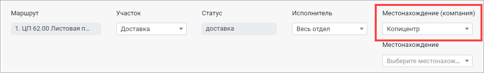 - При отправке по маршруту для выбора нужного местонахождения добавлено поле Местонахождение (компания). По умолчанию указывается компания текущего пользователя.