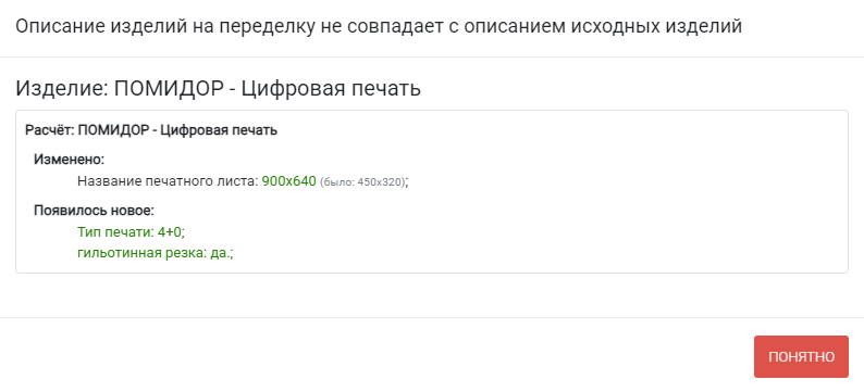 Цель доработки – уведомить пользователя, что изделие на переделку отличается от оригинального изделия.