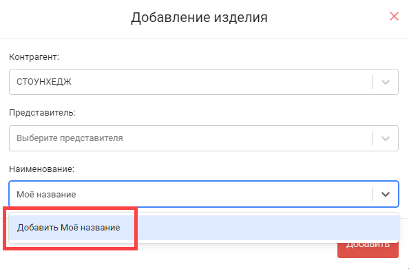Если такого наименования в справочнике нет, то в списке отображается пункт Добавить.